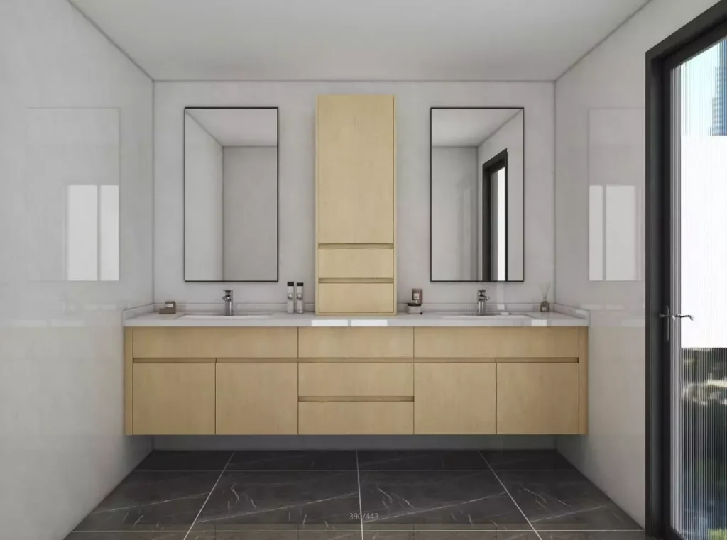 Double Vanities: Double vanities are ideal for larger bathrooms and provide separate spaces for two people to use the bathroom at the same time. They are available in a range of styles, from traditional to contemporary.